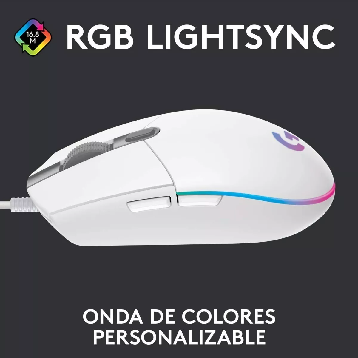 - Iluminación RGB LIGHTSYNC: Personaliza la iluminación con una paleta de 16.8 millones de colores y sincroniza efectos con otros dispositivos Logitech G compatibles.