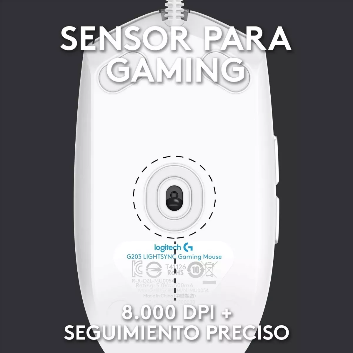 Mouse Gamer Logitech G203 LIGHTSYNC RGB: Eleva tu experiencia de juego con este mouse alámbrico que ofrece un sensor óptico de hasta 8,000 DPI, iluminación RGB personalizable y un diseño clásico de 6 botones. Su construcción ergonómica en color blanco garantiza comodidad y precisión en cada partida.